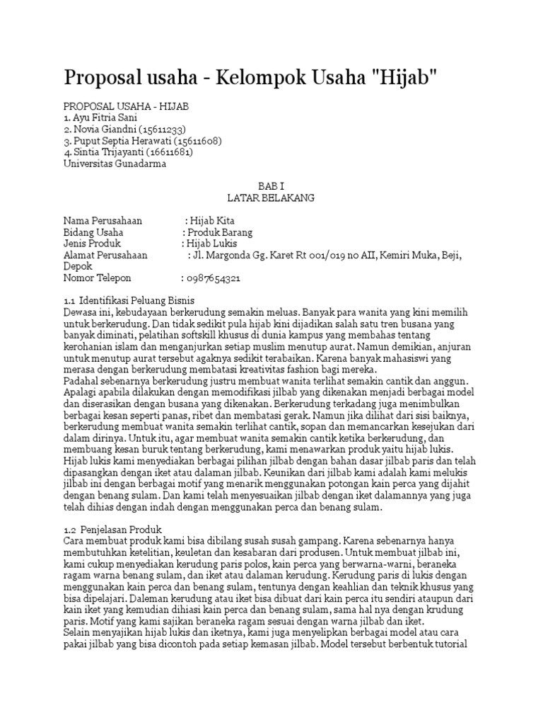.penjualan jilbab berbahan satin velvet dan katun berkualitas namun harga murah pdf free download : Usaha industri produk olahan dari terung b. Nama dhiya' berasal dari bahasa arab yang artinya cahaya atau sinar. Melalui proposal ini kami ingin mengajukan penawaran pembuatan sim dan program aplikasi lain kepada. Menurut kbbi, proposal merupakan rencana yang dituangkan dalam bentuk rancangan.